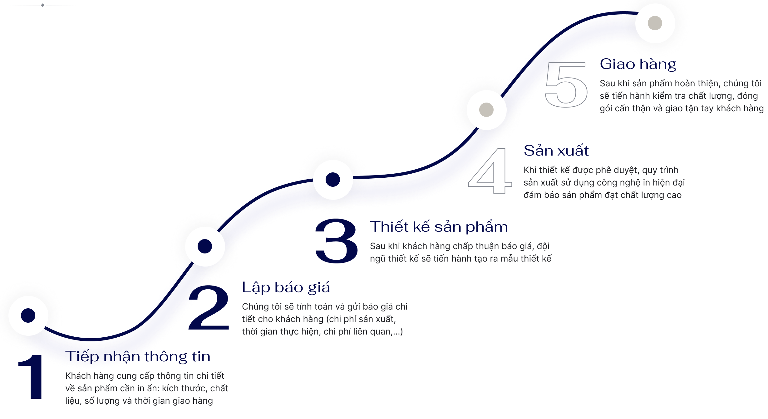 - Tiếp nhận thông tin: Khách hàng liên hệ để trao đổi nhu cầu in ấn, yêu cầu về thiết kế và chất lượng.